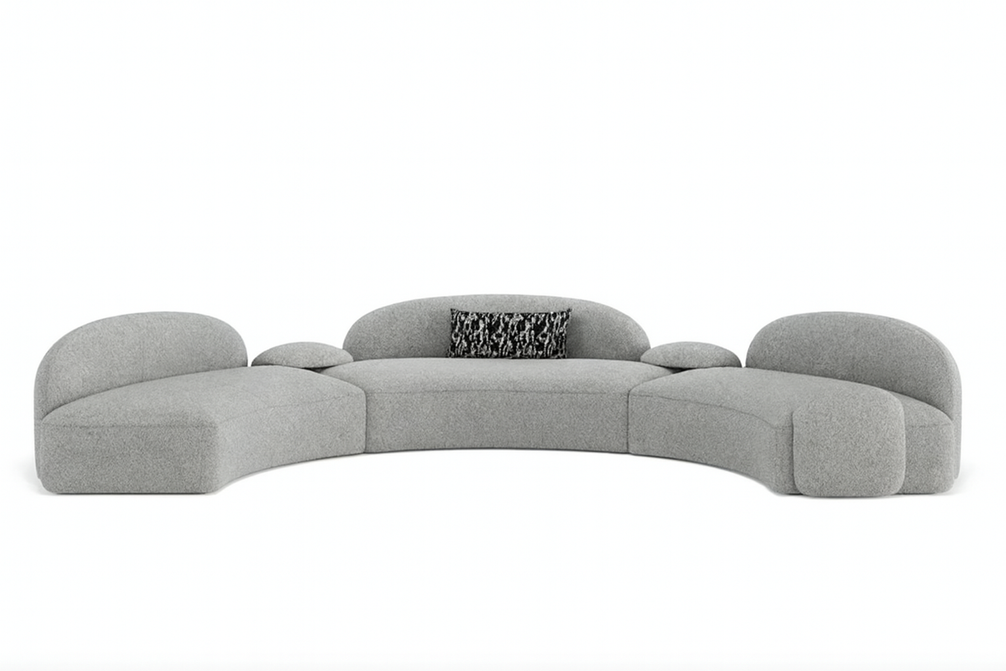 The Audra Sofa is a statement in sculptural comfort and refined Italian design. Wrapped in a soft grey performance cloth, this 3-piece C-shaped sectional blends luxurious curves with modern architecture, creating a warm and elegant focal point for any living space. Its generous proportions and fluid silhouette invite both lounging and conversation, while the modular form allows for organic room flow.
