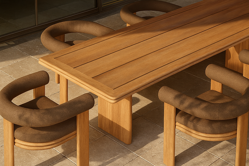 Evoking the warmth of a Mediterranean villa, the Maui set features a solid teak wood frame renowned for its strength, weather resistance, and natural beauty. The furniture’s clean lines and subtle ribbed detailing create an effortlessly elegant silhouette perfect for both modern and classic outdoor spaces.