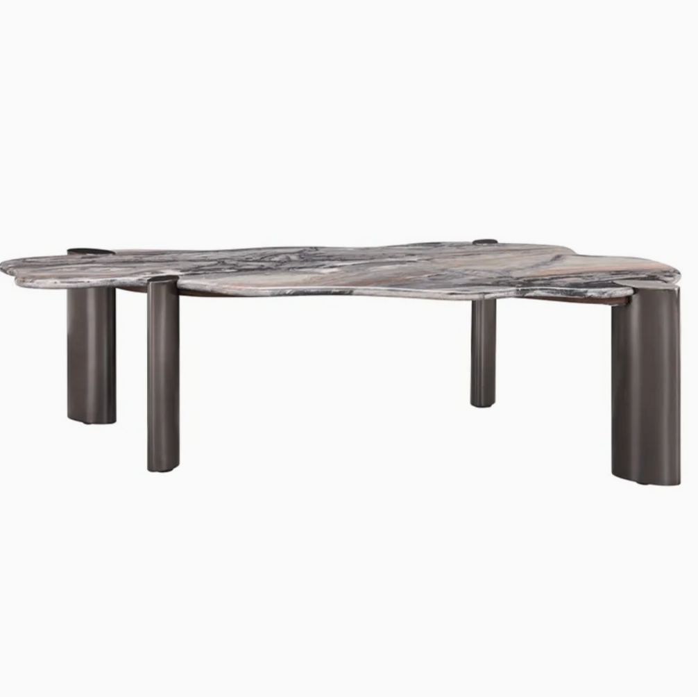 Elevate your living space with the Rivers Coffee Table from Wolf & Willow, featuring a luxurious Venetian brown Italian marble top that exudes sophistication. Its sleek stainless steel base provides a stunning contrast, embodying a truly modern aesthetic. This piece not only adds an element of elegance to your home but also reflects our commitment to quality.