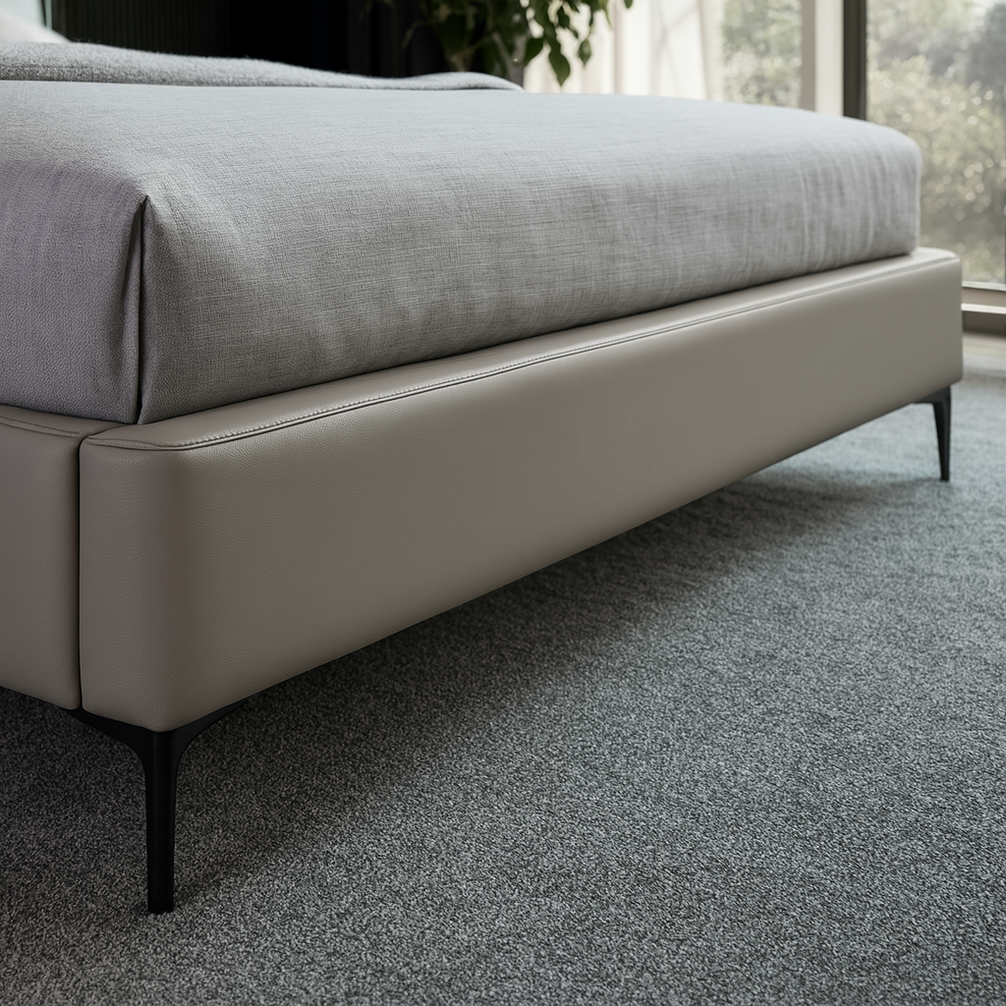 Meticulously upholstered in Italian light grey leather, this piece exudes sophistication and elegance. The solid wood frame ensures enduring strength, while the steel footing adds a contemporary touch. Experience unparalleled comfort with its foam-wrapped design, providing the perfect blend of style and function. Elevate your bedroom with the Manhattan Bed.